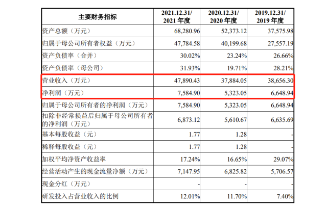 财务数据方面,据招股书披露,2019年至2021年,沃文特分别实现营收3.86亿元、3.79亿元和4.79亿元,净利润分别为6648.94万元、5323.05万元和7584.9万元,业绩整体呈现上扬态势。