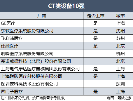 其中,GE医疗与东软医疗分别占据了“销售数量第一”以及“国产销售数量第一”。